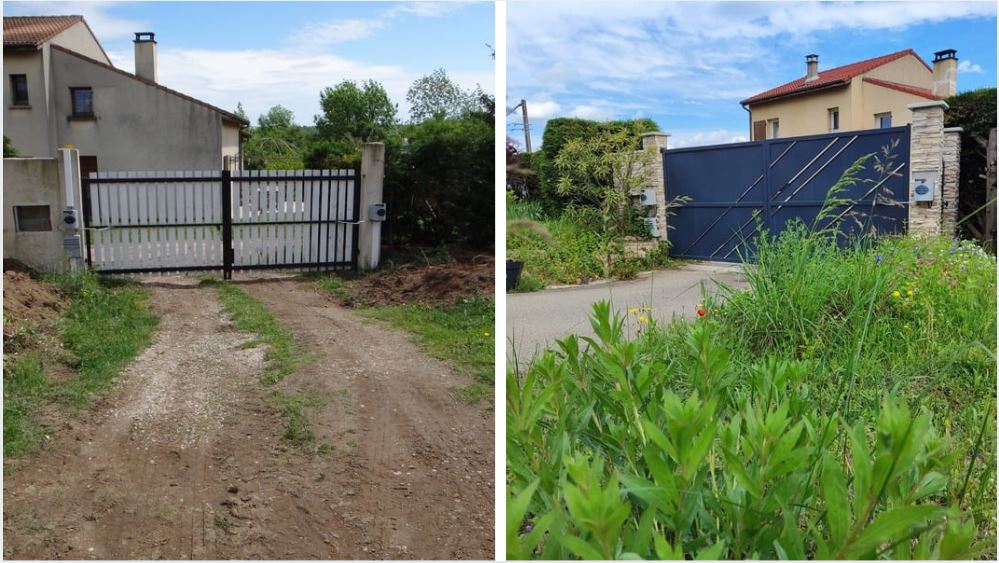 Ce portail aux lignes sobres et affirmées valorise désormais l’entrée de la maison, en offrant un contraste élégant avec la végétation alentour.